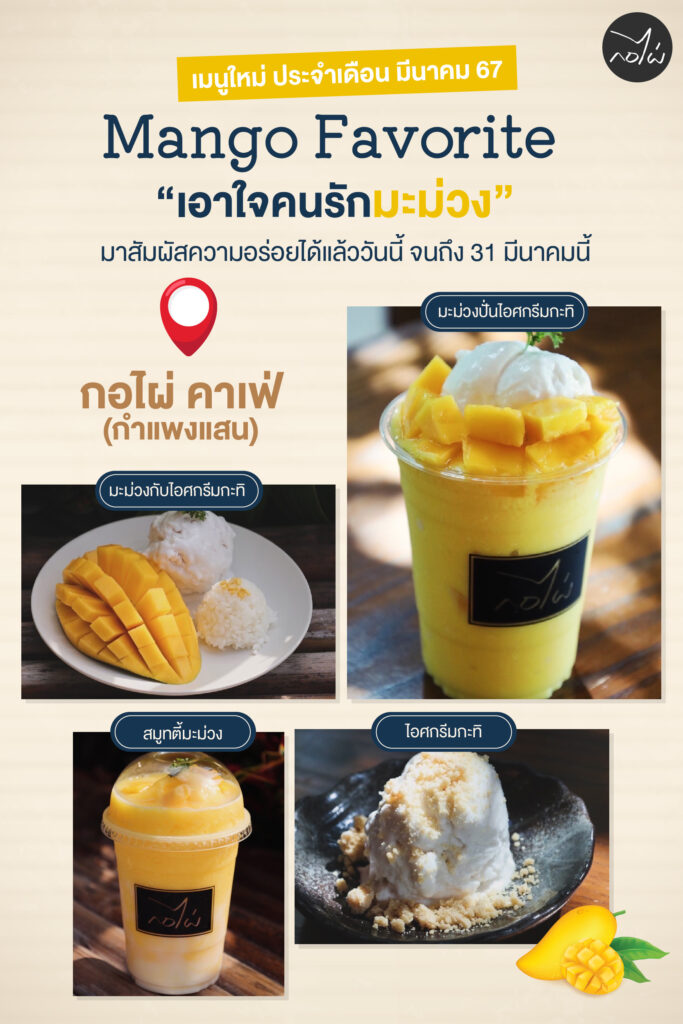 Menu เมนูโปรโมชั่น สามารถติดต่อสั่งซื้อหรือสอบถามได้ที่เคาน์เตอร์ เมนูเครื่องดื่ม เมนูกาแฟ EspressoAA01 เอสเพรสโซ่ ร้อน/เย็น/ปั่น 45 / 70 / 80 Caffe’ AmericanoAA02 คาเฟ่อเมริกาโน่ ร้อน / เย็น 45 / 65 Caffe’ LatteAA03 คาเฟ่ลาเต้ ร้อน/เย็น/ปั่น 60 / 75 / 85 Caffe’ MochaAA04 คาเฟ่มอคค่า ร้อน/เย็น/ปั่น 60 / 75 / 85 CappuccinoAA05 คาปูซิโน่ ร้อน/เย็น/ปั่น 60 / 75 / 85 Signature Gorpai LatteBB02 ซิกเนเจอร์กอไผ่ลาเต้ 75 ฿ Caramel Cold Foam AmericanoBB03 คาราเมโคลด์อเมริกาโน่ 75 ฿ Cheese Cold Foam AmericanoBB04 ชีสโคลด์โฟมอเมริกาโน่ 85 ฿ Sunkist Cold Foam AmericanoBB05 ซันคิสโคลด์โฟมอเมริกาโน่ 85 ฿ Gorpai Coffee CameloBB06 คาเมโล่ค็อฟฟี่กอไผ่ 75 ฿ Thai Iced CoffeeDD01 กาแฟไทย 45 ฿ เมนูเครื่องดื่ม Siganture Butterfly Pea LatteBB01 ซิกเนเจอร์อัญชัญลาเต้ *อัญชันจากสวนกอไผ่ 70 ฿ Passion Fruit Sunkist Iced TeaCC01 ชาเสาวรสส้ม 70 ฿ Honey Lemom Green Iced TeaCC02 ชาเขียวน้ำผึ้งมะนาวอัญชัญเจลลี่ 70 ฿ Edible Flower Iced TeaCC03 ชาดอกไม้ 70 ฿ Lychee Rose Iced TeaCC04 ชาลิ้นจี่กุหลาบ 70 ฿ Fruit Thai TeaCC05 ชาผลไม้ 70 ฿ Thai Lemon lced TeaCC06 ชาไทยมะนาว 45 ฿ Thai Iced TeaDD02 ชาไทย ร้อน/เย็น/ปั่น 40 / 45 / 50 Pink MilkDD03 นมเย็น เย็น / ปั่น 50 / 55 Milk Green TeaDD04 ชาเขียวนม ร้อน/เย็น/ปั่น 45 / 50 / 55 Cocoa Lava Green TeaDD05 ชาเขียวโกโก้ลาวา 65 ฿ CocoaDD06 โกโก้ ร้อน/เย็น/ปั่น 45 / 50 / 55 Cocoa with MintDD07 โกโก้มินต์ เย็น / ปั่น 70 / 75 Fresh MilkDD08 นมสด ร้อน/เย็น/ปั่น 45 / 50 / 55 Caramel Fresh MilkDD09 นมสดคาราเมล เย็น / ปั่น 50 / 55 Blue Hawaii Lemon SodaEE01 บลูฮาวายเลม่อนโซดา 70 ฿ Kiwi Apple SodaEE02 กีวี่แอปเปิ้ลโซดา 70 ฿ Pineapple Virgin Mojito SodaEE04 สับปะรดโมจิโต้โซดา 70 ฿ Lemon SodaEE05 เลม่อนโซดา 60 ฿ Honey Lemon SodaEE06 เลม่อนน้ำผึ้งโซดา 70 ฿ Mixed Berry Yogurt SmoothieEE07 สมูทตี้โยเกิร์ตมิกซ์เบอร์รี่ 85 ฿ Strawberry Yogurt SmoothieEE08 สมูทตี้โยเกิร์ตสตอเบอรี่ 85 ฿ Black Orchid Hot TeaFF02 ชุดชากล้วยไม้ดำ 80 ฿ เมนูอาหาร เมนูอาหารจานหลัก Beef Steak + Potatoes A01 สเต็กเนื้อ + มันฝรั่ง 580 ฿ Ribeye Steak Cafe de Paris Sauce A02 ริบอายคาเฟ่ดิปารีสซอส 590 ฿ Fish / Shrimps & Chips Combo A03 ฟิชชริมพ์แอนด์ชิพส์คอมโบ 300 ฿ Smoked Fork Chop Steak A04 สเต็กสโมคพอร์คชอป 150 ฿ Grilled Chicken Steak + Potatoes A05 สเต็กไก่ + มันฝรั่ง 150 ฿ Barbecue Pork Ribs A06 ซี่โครงหมูบาร์บีคิว 299 ฿ Beef Burger + French Fries A07 เบอร์เกอร์เนื้อ + เฟรนซ์ฟรายส์ 180 ฿ Classic Cobb Salad B01 คลาสสิคค็อบบ์สลัด 120 ฿ Fish Tempura Salad B02 สลัดปลาเทมปุระ 120 ฿ Grilled Chicken Salad with Green Apple B03 สลัดไก่ย่าง & แอปเปิ้ลเขียว 120 ฿ Shripms Tempura Salad with Cucumber B04 สลัดกุ้งเทมปุระ & แตงกวา 120 ฿ Caesar Salad B05 ซีซาร์สลัด 120 ฿ Tuna Salad B06 ยำทูน่าสลัด 120 ฿ Mushroom Tempura Salad B07 สลัดเห็ดเทมปุระ 120 ฿ Spaghetti with Chill & Crispy Bacon C01 สปาเก็ตดี้ผัดพริกแห้งเบคอน 150 ฿ Spaghetti Cream Sauce with Shrimps Tempura C02 สปาเก็ตดี้ซอสครีม & กุ้งเทมปุระ 180 ฿ Tom Yum Spaghetti C03 สปาเก็ตตี้ต้มยำกุ้ง 180 ฿ Chicken Spaghetti with Parmesan Cheese C04 สปาเก็ตตี้ชิกเก้นพาเมซานชีส 180 ฿ Spaghetti with Tomato Sauce and Minced Chicken C05 สปาเก็ตตี้ซอสมะเขือเทศไก่สับ 150 ฿ Penne Cream Sauce with Spinash & Grilled Chicken C06 เพนเนซอสครีมผักโขม & ไก่ย่าง 180 ฿ Fusilli Pink Sauce with Grilled Fish C07 ฟูซิลลีพิงค์ซอส & ปลาย่าง 180 ฿ Fried Pork with Garlic and Fried Egg on Rice D01 ข้าวหมูทอดกระเทียมไข่ดาว 120 ฿ Shirimp Fried Rice D02 ข้าวผัดกุ้ง 80 ฿ Holy Basil Rice wiht Chicken and Fried Egg D03 ข้าวกระเพราไก่ + ไข่ดาว 180 ฿ Holy Basil Rice With Pork and Fried Egg D04 ข้าวก